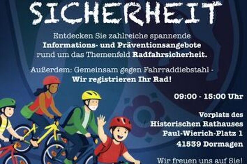 Am Freitag, 17. April, dreht sich in Dormagen alles um das Thema sichere Mobilität auf zwei Rädern: Von 9 bis 15 Uhr führt die NRW Initiative #sicherimStraßenverkehr mit ihren Netzwerkpartnern eine gemeinsame Aktion zum Thema Sicherheit für Radfahrende auf dem Vorplatz des Historischen Rathauses durch. In diesem Zuge schließt sich die Stadt Dormagen der NRW Initiative als Netzwerkpartner an und unterstreicht damit ihr Engagement für mehr Sicherheit im Straßenverkehr.